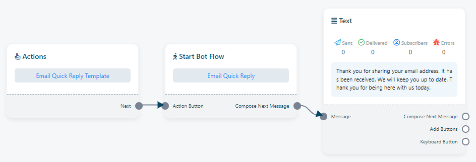 Email Reply: Similarly,`Email Reply` is a pre-configured message template available for use when a bot receives an email address from a user. Users can assign this Email Reply to any bot as needed.