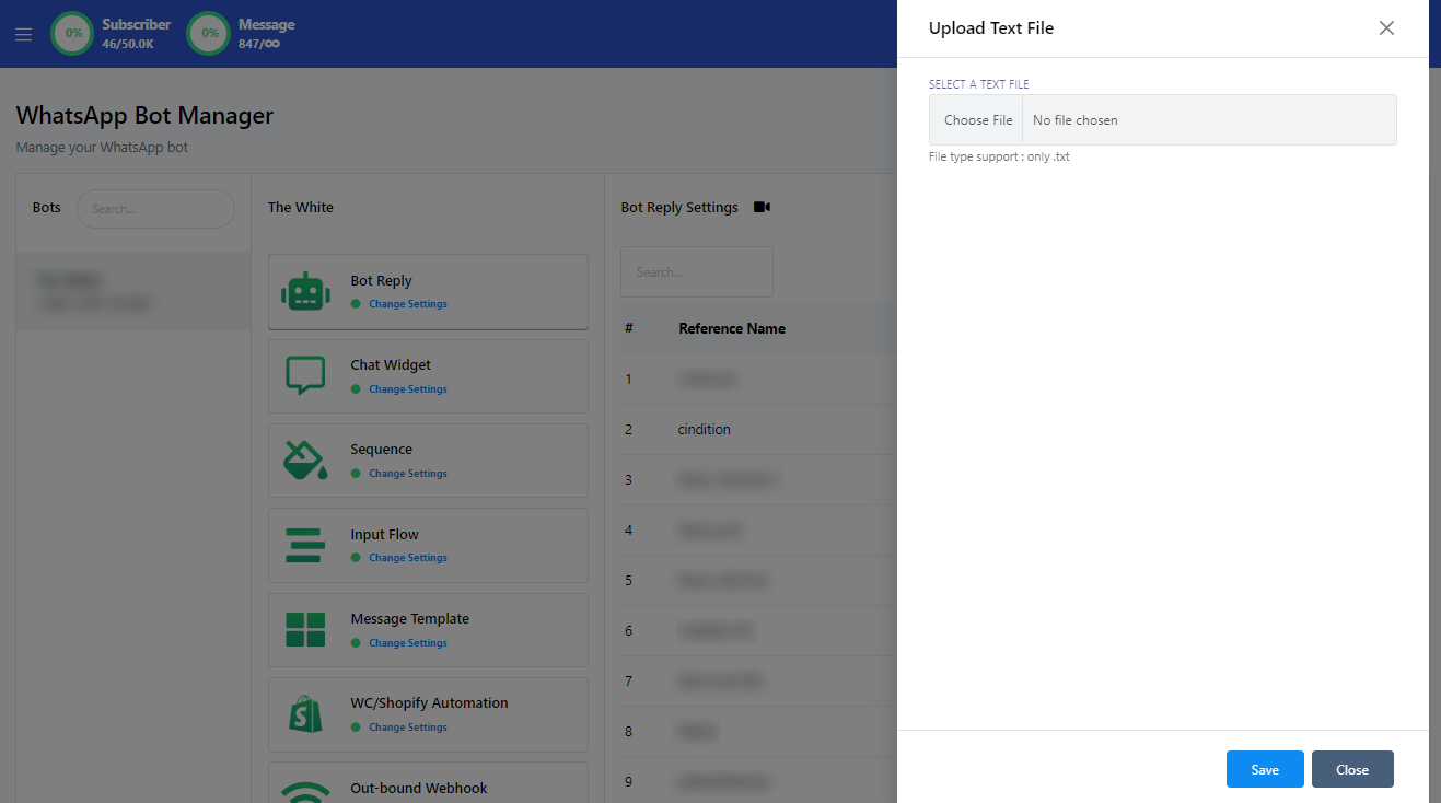 4. After the import, check the Bot Reply section of the selected bot within your Telegram Bot Manager. Your user bot list will be updated accordingly.