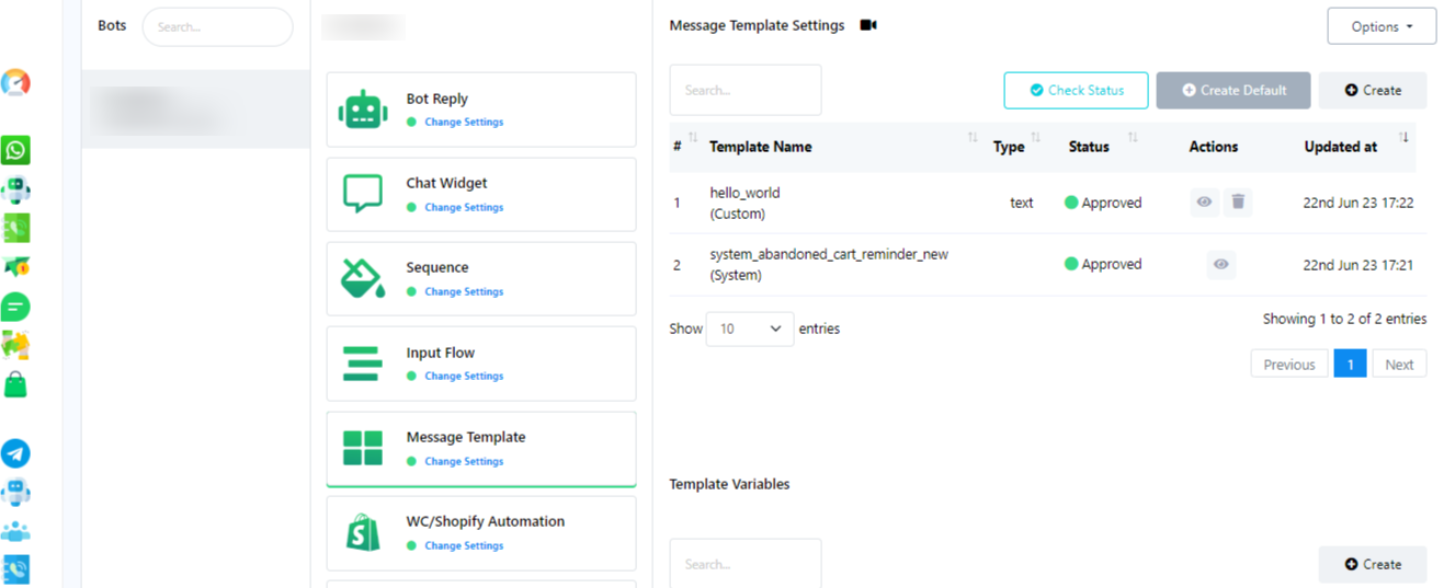 - Go to pandusolusi Dashboard and navigate to the Bot manager section.